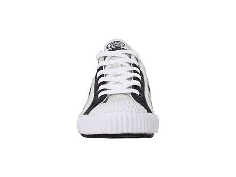 superiore con pannelli di perforazione dettagli e accenti di sovrapposizione a contrasto in pelle.